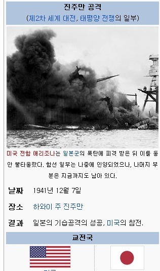 일본이 진주만 폭격, 미국에 대해 선전포고를 한 날 ▶ 1941년 12월 8일