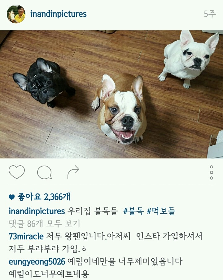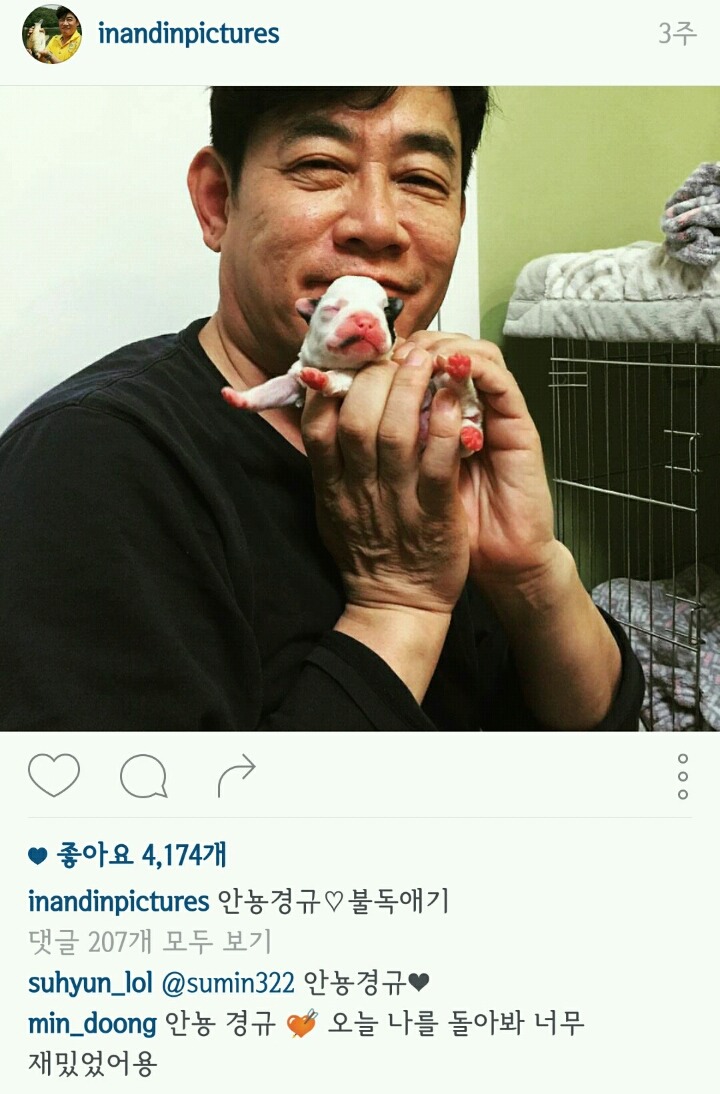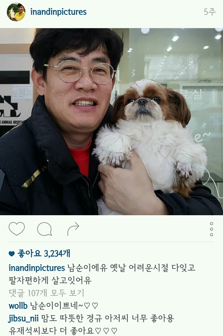 작성자그래네가이겼단다 작성시간 16.03.19 아빠랑 너무 똑같이 생겼는데 심지어 개좋아하고 술좋아하는것도 똑같앸ㅋㅋㅋㅋㅋㅋㅋㅋ사투리쓰고 안경낀것돜ㅋㅋㅋㅋㅋㅋㅋ그래서 경규 아저씨 울아빠가틈...히히