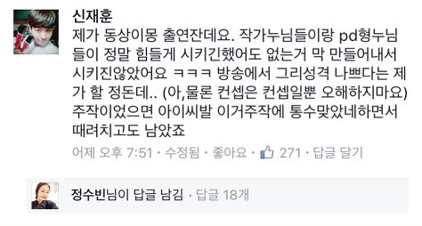 그리고 이건 저번에 팔씨름 중독편에 출연한 학생이 댓글 단거