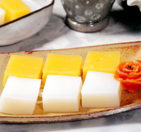 과편 주로 과일즙이나 과일을 삶아 거른 즙에 설탕이나 꿀을 넣고 조리다가 녹말물을 넣어 엉기도록 한 다음 그릇에 쏟아 식힌 후, 편으로 썬 것으로 서양의 젤리와 비슷하다고 합니다!