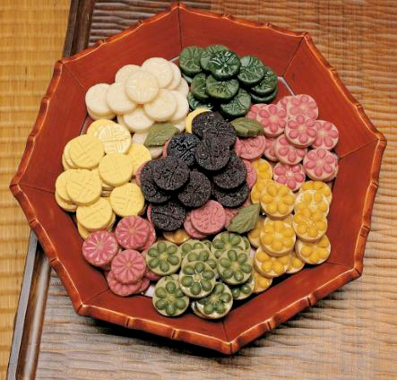 다식 쌀이나 밤, 콩 등의 곡물을 가루낸 다음 꿀 또는 조청에 반죽하여 다식판에 찍어낸 과자입니다!