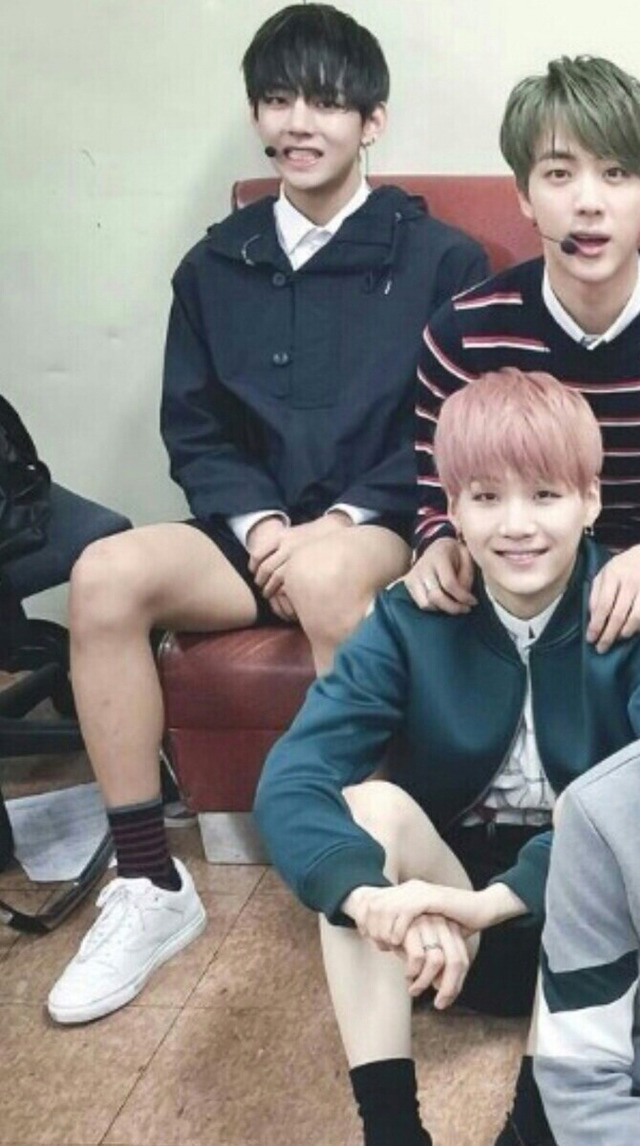 남색옷 슈가 & 방탄소년단 멤버들 다리색 차이