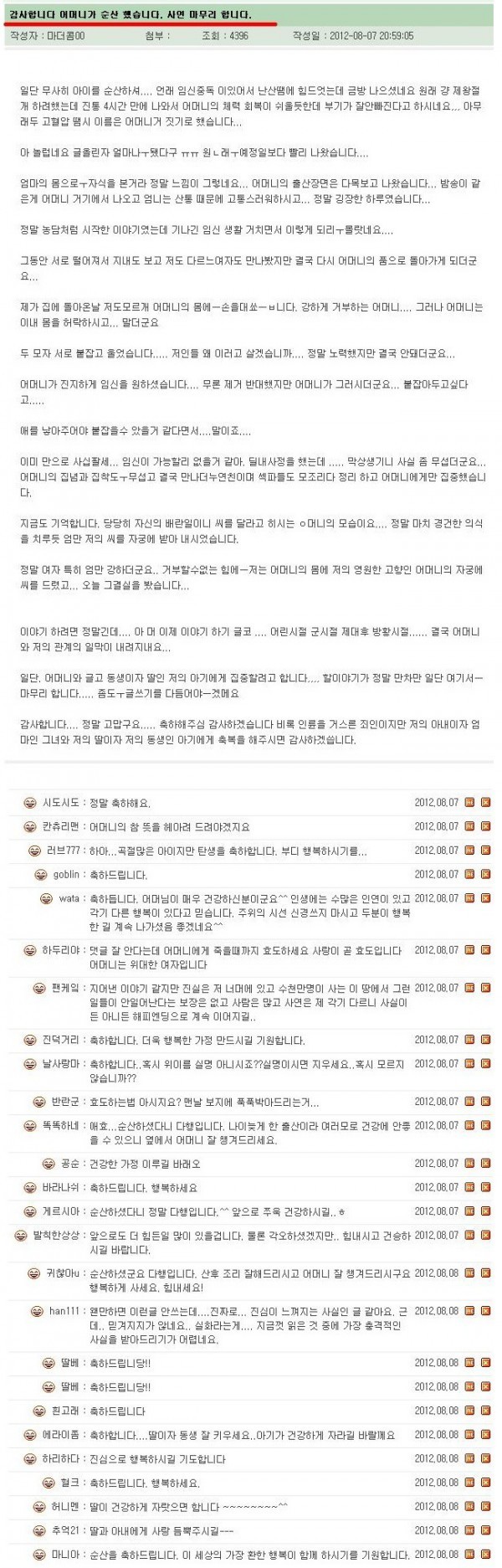 이 글이 올라온건 2012년도이고, 지금 애기는 4살?5살? 된거 같음