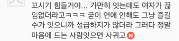 답댓글 작성자꽃베개 작성시간 16.04.30 만나도 내부분은 연예인지망생이라며 놀고있는애 또는 비전없이 술이나 먹고 놀러다니는 애..^-^ 딱 얼굴말곤 볼게없는애들뿐이엇다..