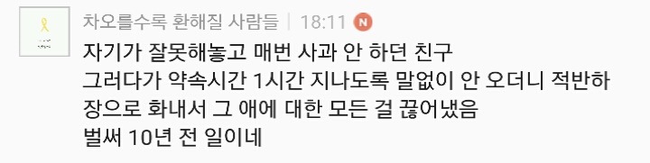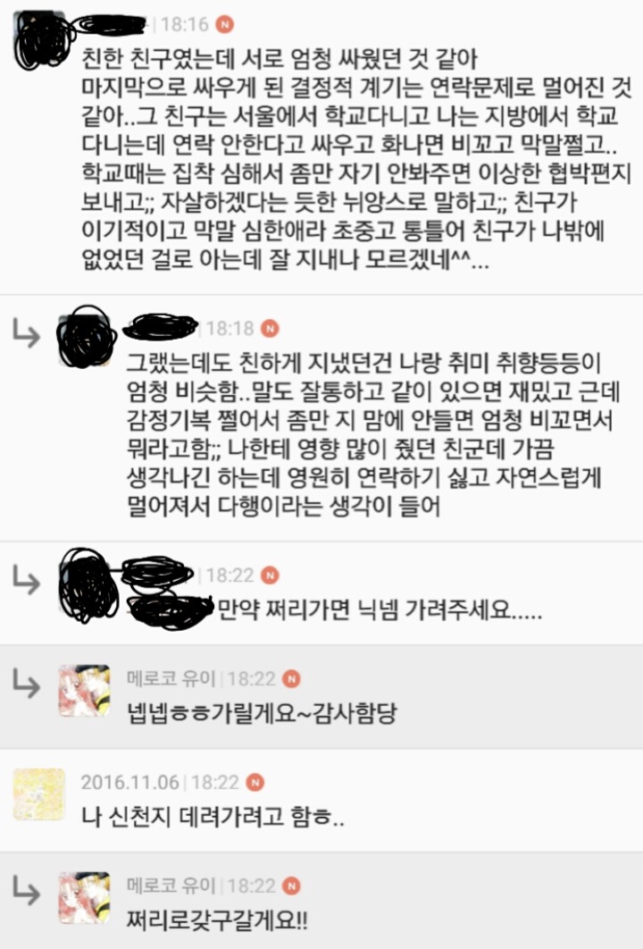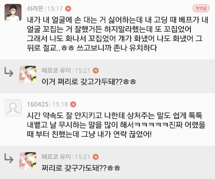 이미 쩌리에 올리기 전 자게에서 수집했을때도 별의별 사람들 다있더라구....어떤 이유로 천년의 우정도 식었는지 궁금합니다!!!