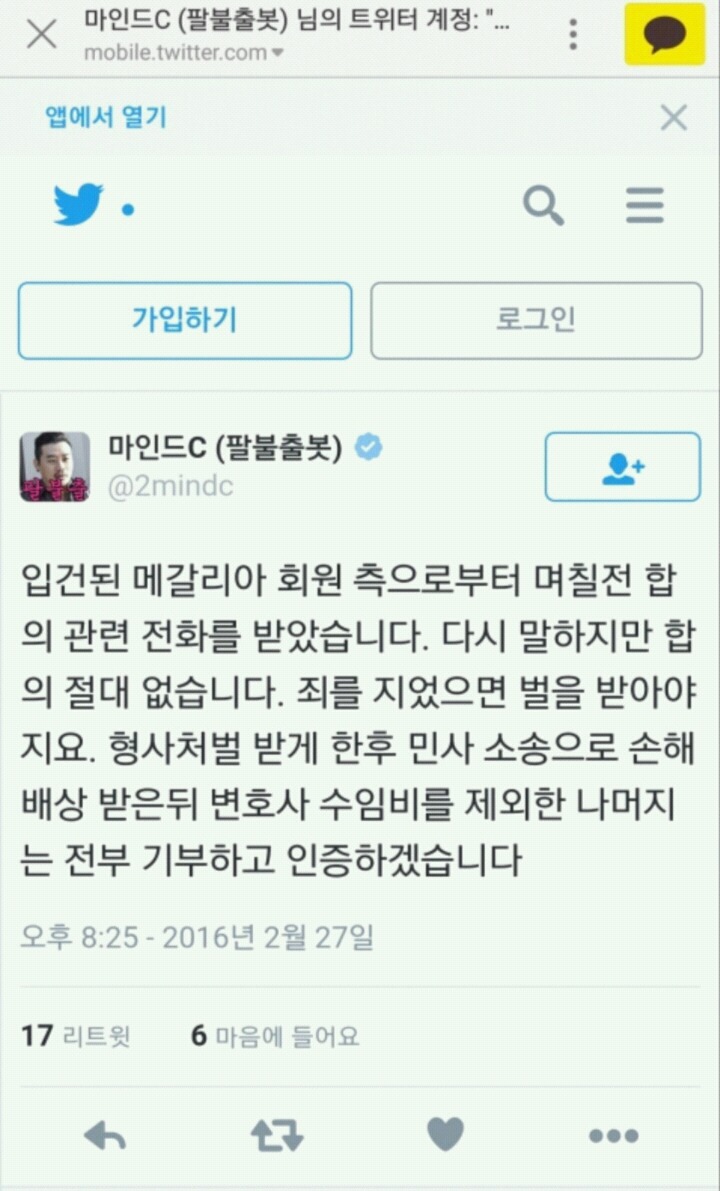 고소한 소송들 처분결과 나오기 전에 sns에 마인드C작가가 올린글