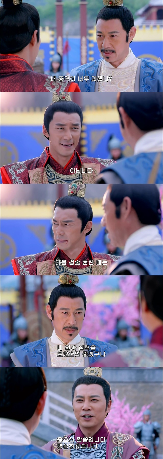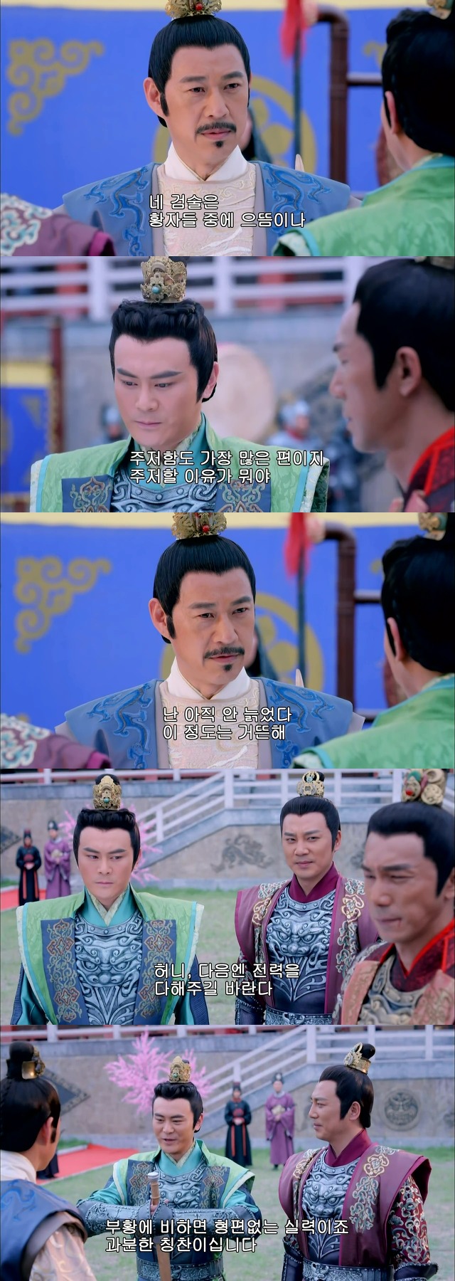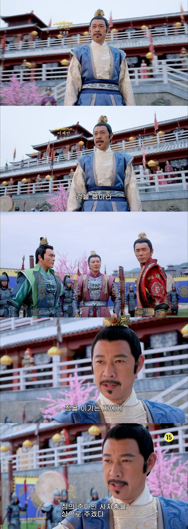그것을 보고 흐뭇해 하는 황제 태종 이세민(파랑)