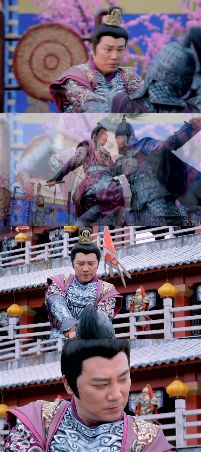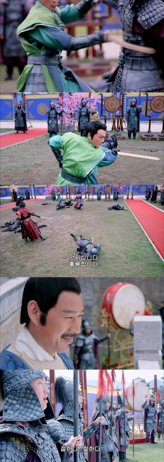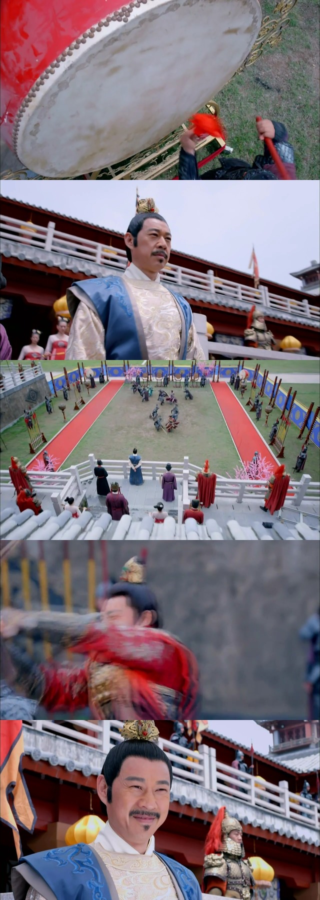 그것을 보고 흐뭇해 하는 황제 태종 이세민(파랑)