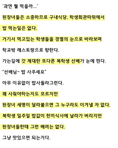 거기서 먹고있는 학생들을 부러운 눈으로 바라보며 학교밖 편의점으로 향한다.