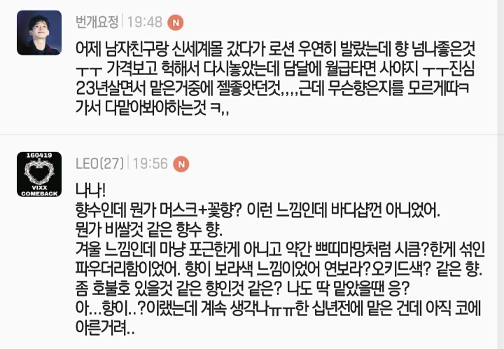 서로 짐작가는 향수 알려주고 찾아보자ㅎㅎ