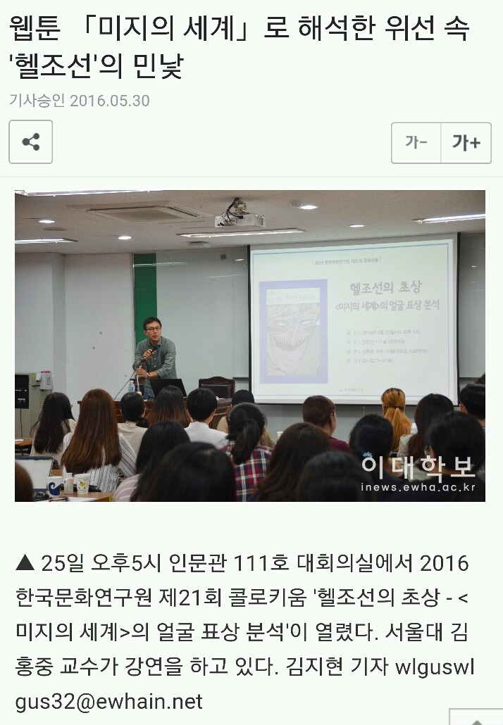 저번달 엔 서울대 교수가 이자혜작가의 미지의세계로 이화여대에서 강의도함 흥미돋!