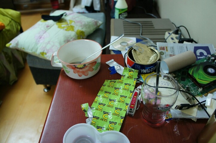 여시 책상 위에 뭘 먹고 이렇게 놔 둠
