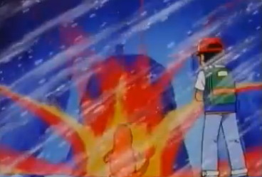 강제로 몬스터볼로 파이리를 불러들이는 지우