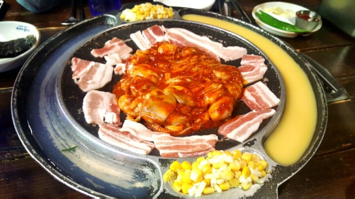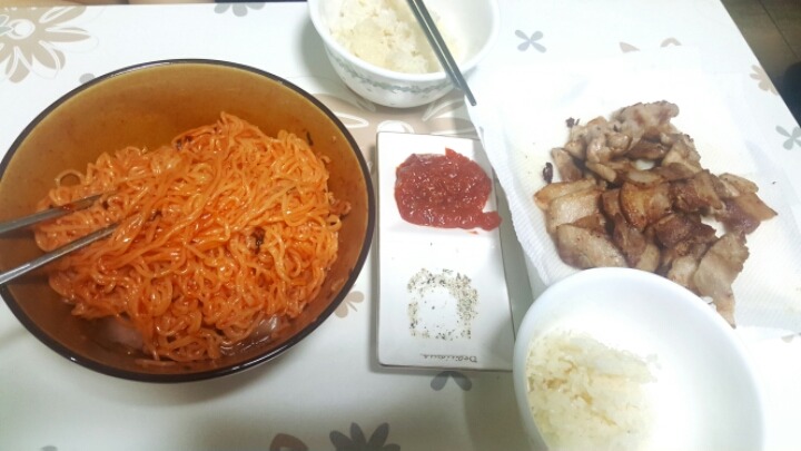 비빔면에 삼겹살