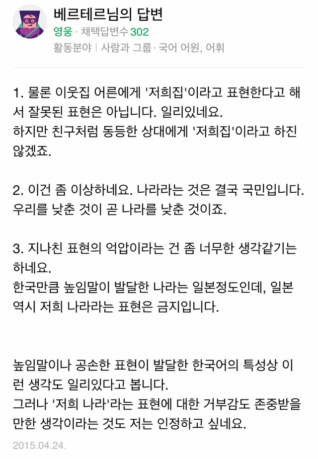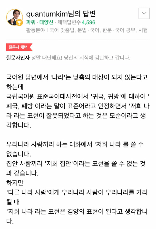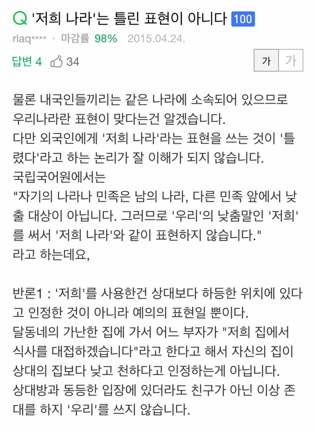 내국인에게 "저희나라" (×)