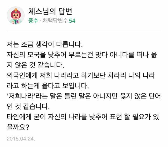 나라는 겸양의 대상이 아니다.
