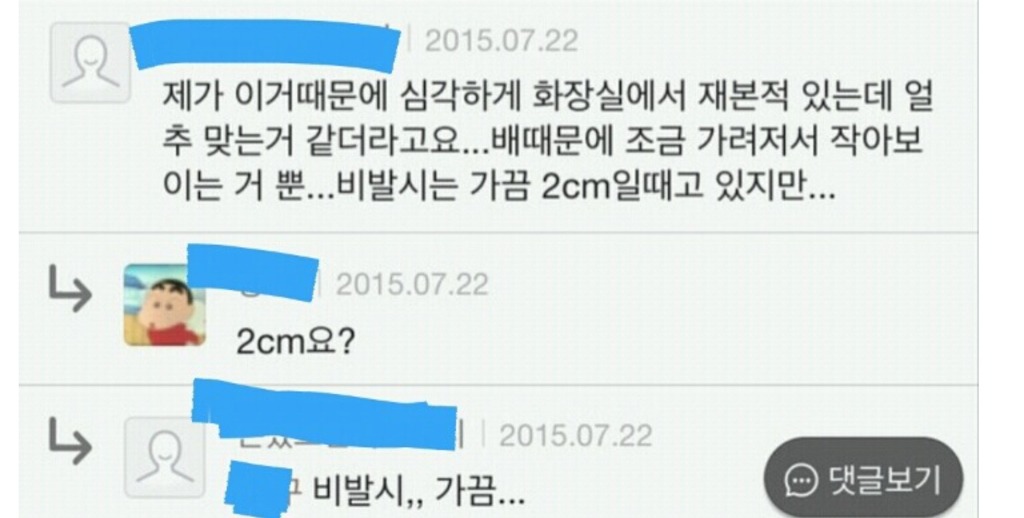 작성자냥냐냐냐냐냐 작성시간 16.08.02 정말 불쌍하다... 내남친은 가만히있어도 10센치는 넘는데... 저 꼬추로 어떻게 세상 살지?.. 서서 오줌을 왜 싸는 걸까?.. 바지에 다 묻을텐데... 내남친 고추 커서 고마워^^