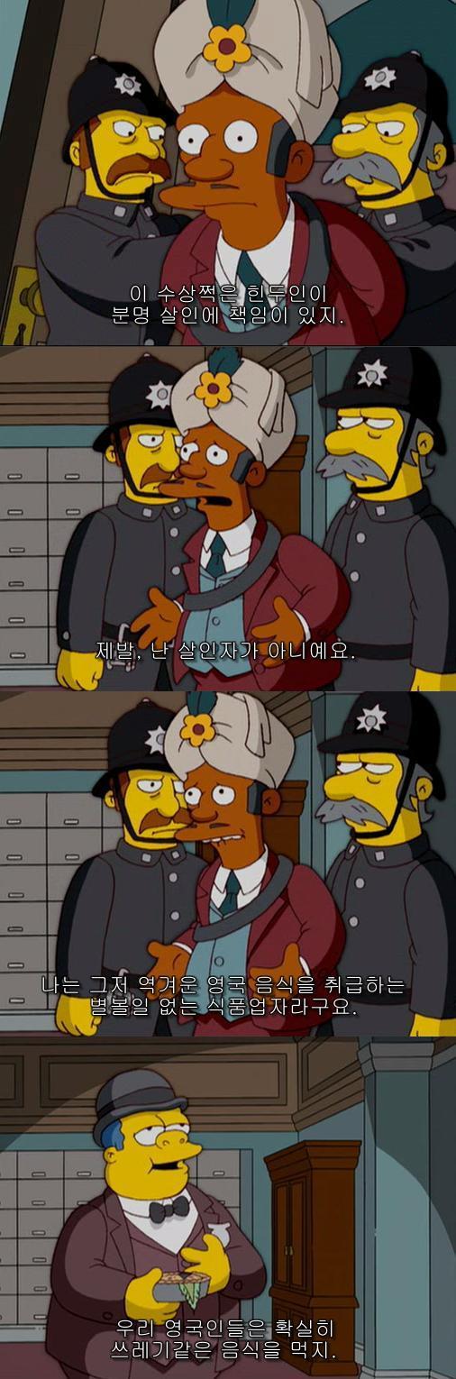 | "영국이 대영제국을 건설한 이유를 알 것 같다. 나라도 이딴 음식 먹느니, 다른 나라 쳐들어가서 그 나라 음식 뺏어먹고 말지..." |