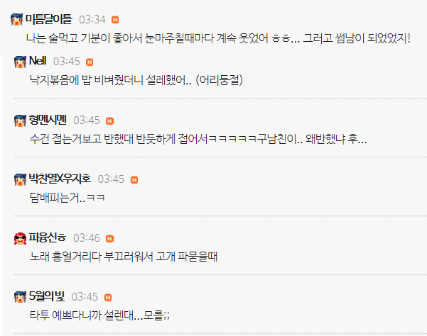 작성자언니오빠 작성시간 16.09.29 윙크게임하는데 개심쿵함ㅋㅋㅋㅋ윙크할때마다대놓곸ㅋㅋㅋㅋㅋ새끼야그럼 내가 마피아인거 다 들키자나!!