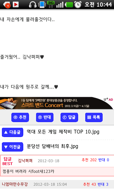 [흥미돋][멘붕주의] -웃대인이 김낙퍼퍼 만난후기- 작성자버킷리스트-홍쫑과 연애하기|작성시간12.03.21|조회수31,340 목록 댓글 78 글자크기 작게가 글자크기 크게가 말세다 다음검색 현재 게시글 추가 기능 열기 북마크 공유하기 신고 센터로 신고 댓글 댓글 78 댓글쓰기 답글쓰기 댓글 리스트 작성자(●❛ ਊ ❛●) | 작성시간 12.03.21 본명인 사람은 어떡하라고...ㅠㅠ 작성자냐므냐므 | 작성시간 12.03.21 존니이뿌다...가명좀쓰지 그이름인사람생각안하고ㅛㅡ바 작성자방구소리에 소스라침 | 작성시간 12.03.22 명예훼손죄로 신고해버려 작성자골딩 | 작성시간 12.03.22 진짜 김낙퍼퍼씨는 어떡해ㅡㅡㅡㅡㅡㅡㅡㅡㅡㅡㅡㅡㅡㅡㅡㅡㅡㅡㅡㅡ 작성자2장우 | 작성시간 12.03.22 헐....남이름가지고 뭐하는짓이라노 댓글 전체보기