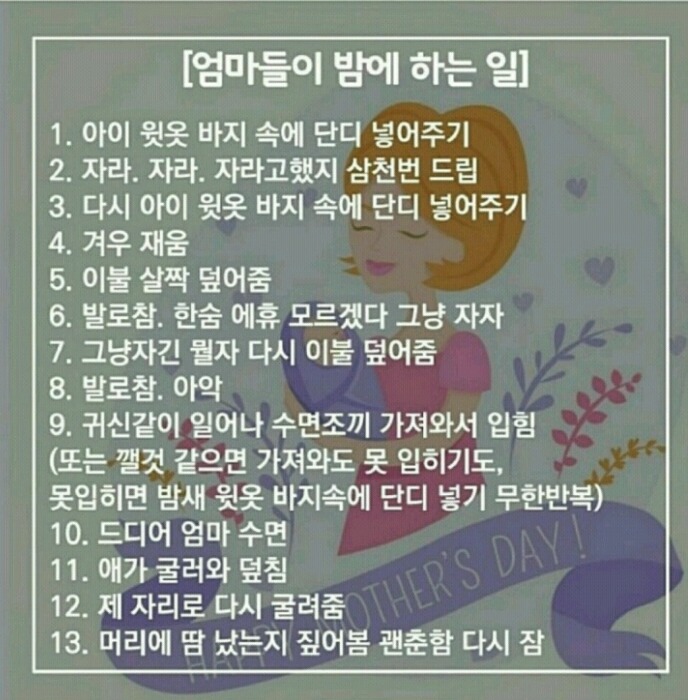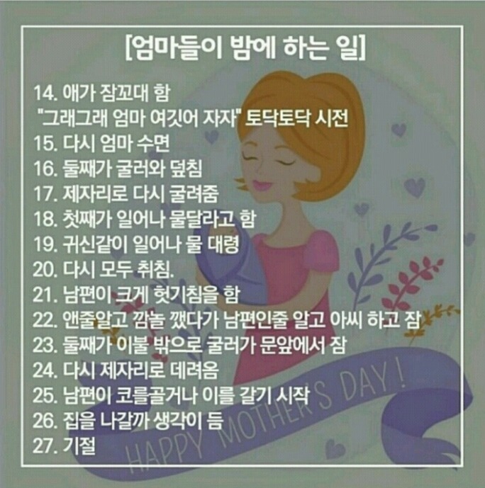 작성자쩍벌다람람쥐 작성시간 16.10.04 애기낳고 제대로 연속으로 자기 시작한게 출산 후 5년째 이후. 정말 10번 100번 1000번 생각하고 결혼,출산 하길.