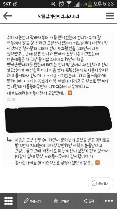 팬들 현타오는 글 보고