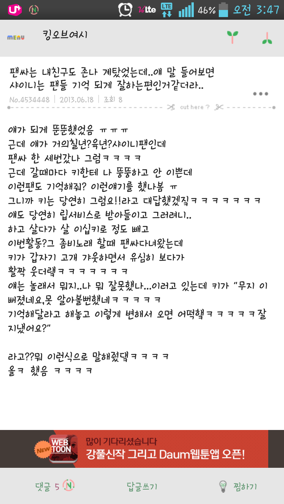 팬이 종현보고 실물 처음보다고 하니까