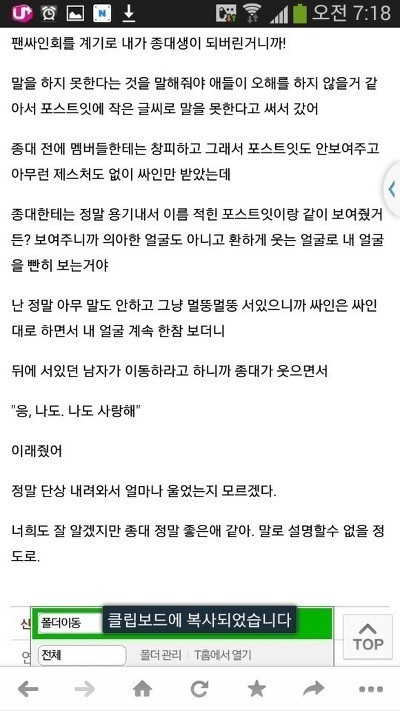 팬: 오빠 어제 왜 안들어왔엉 기다렸단 말이야