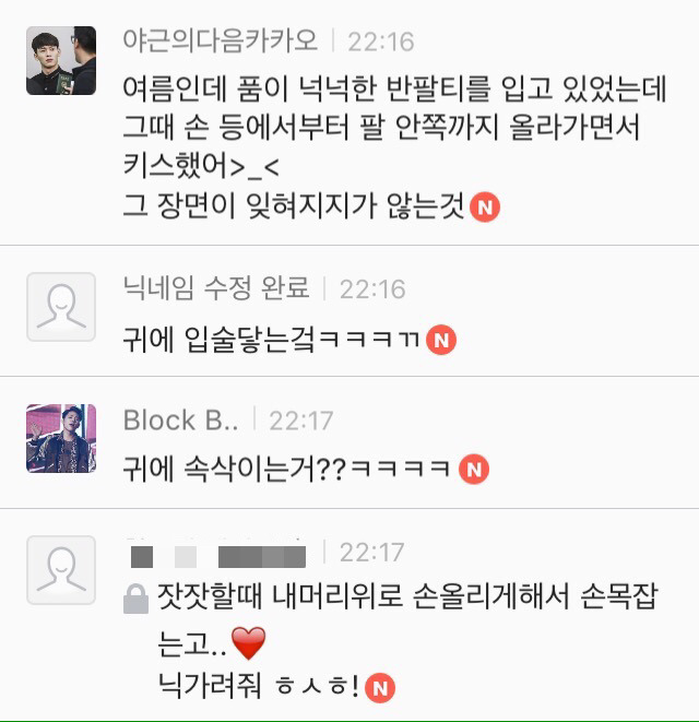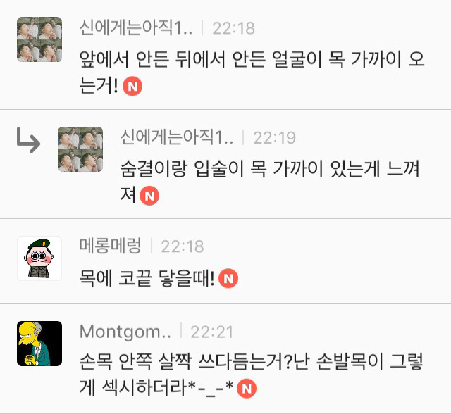 작성자무민양품 작성시간 16.12.01 손바닥에 키스하는거..손가락빠는거...키스할때 서로 쳐다보는거..귀에 키스하는거