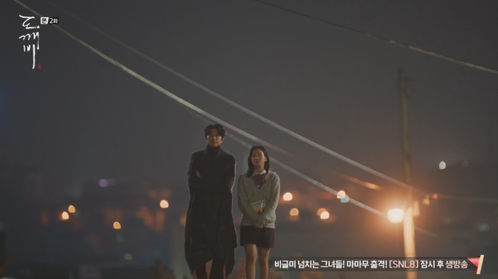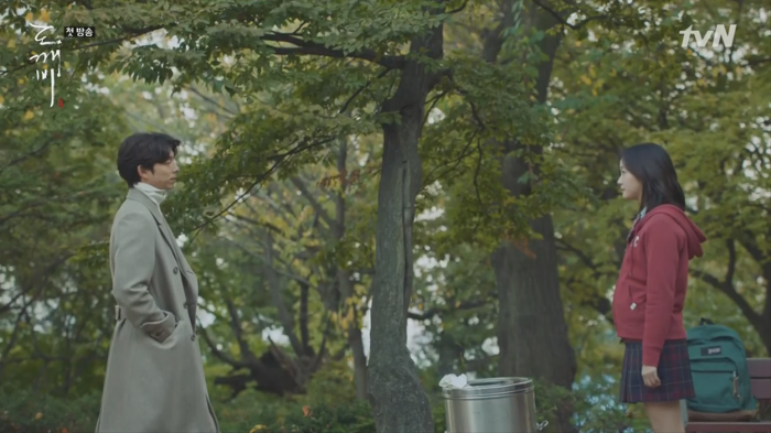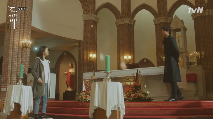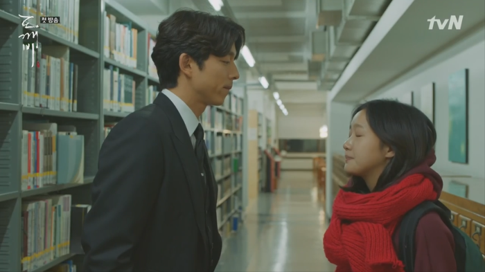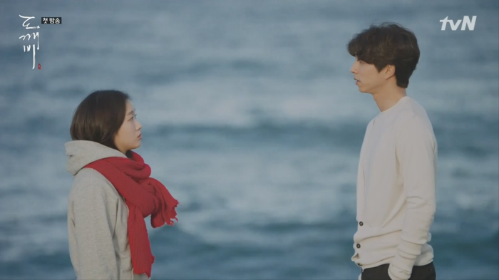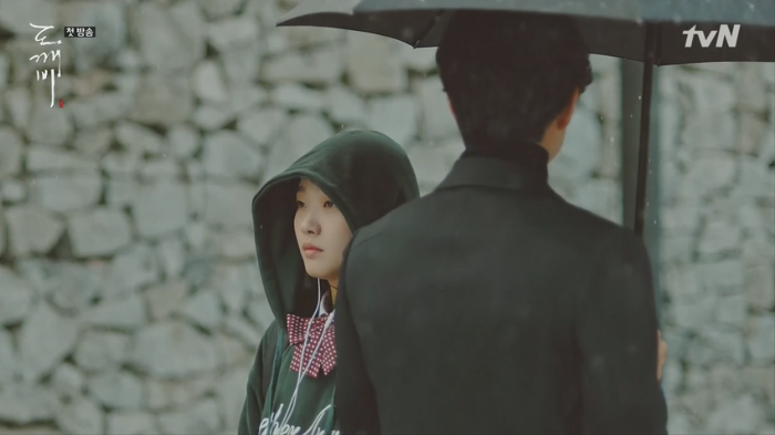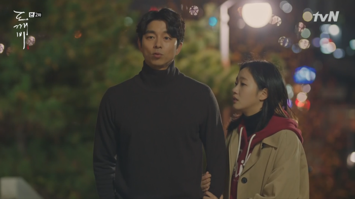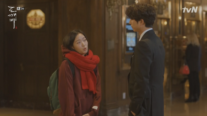 도깨비 가슴에 꽂힌 칼의 존재에 대해 모르는 듯한 은탁(김고은).
