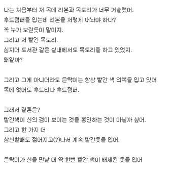 그리고 그게 아니더라도 은탁이는 항상 빨간 색 의복을 입고 있어