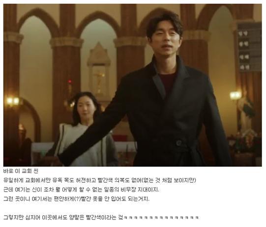유일하게 교회에서만 유독 목도 허전하고 빨간색 의복도 없어(없는 것 처럼 보이지만)