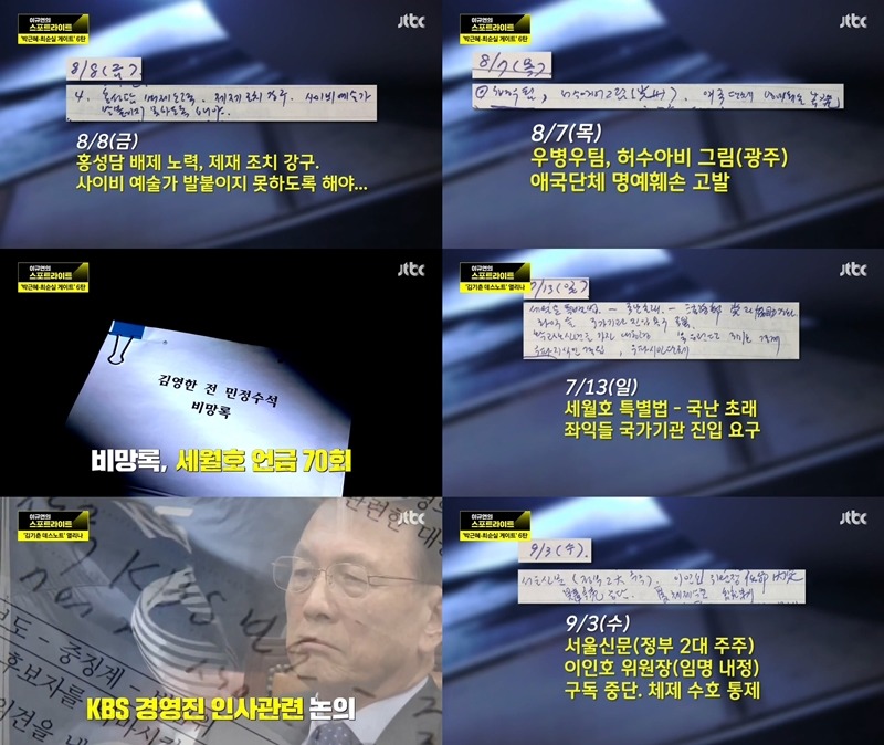 김영한 민정수석은 지시를 꼼꼼하게 메모해 놓음.