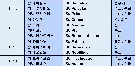 내 생일이 1월 18일이다. 그러면 18일이 축일인 성인 중에