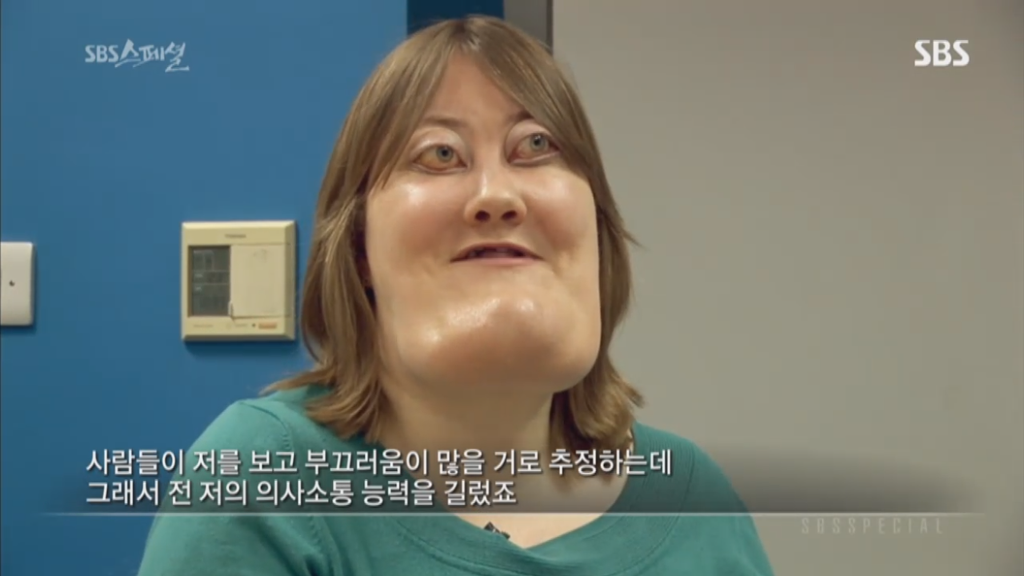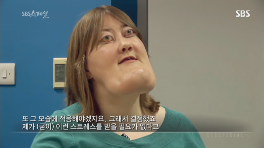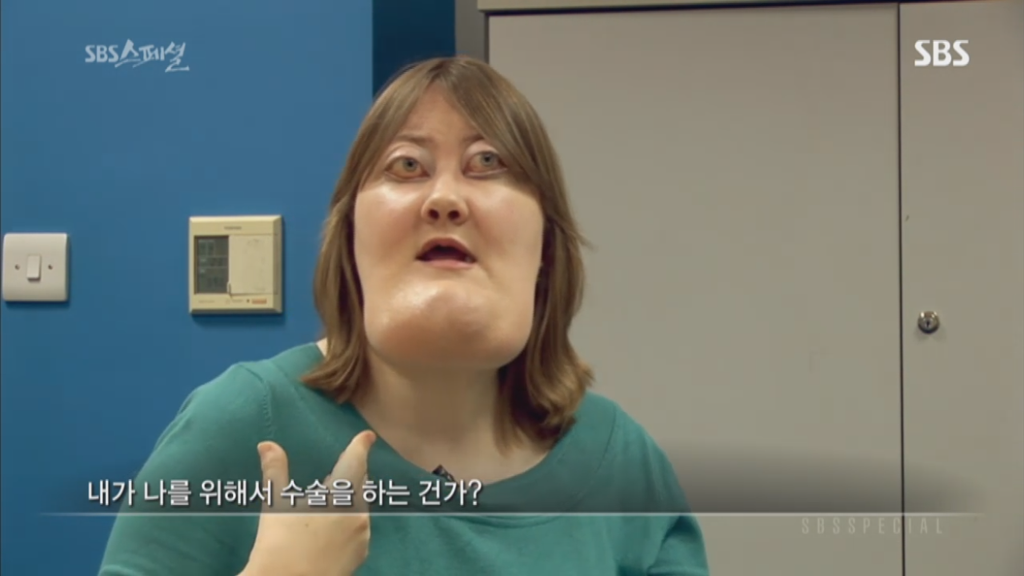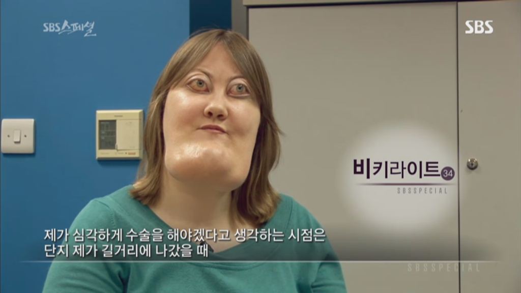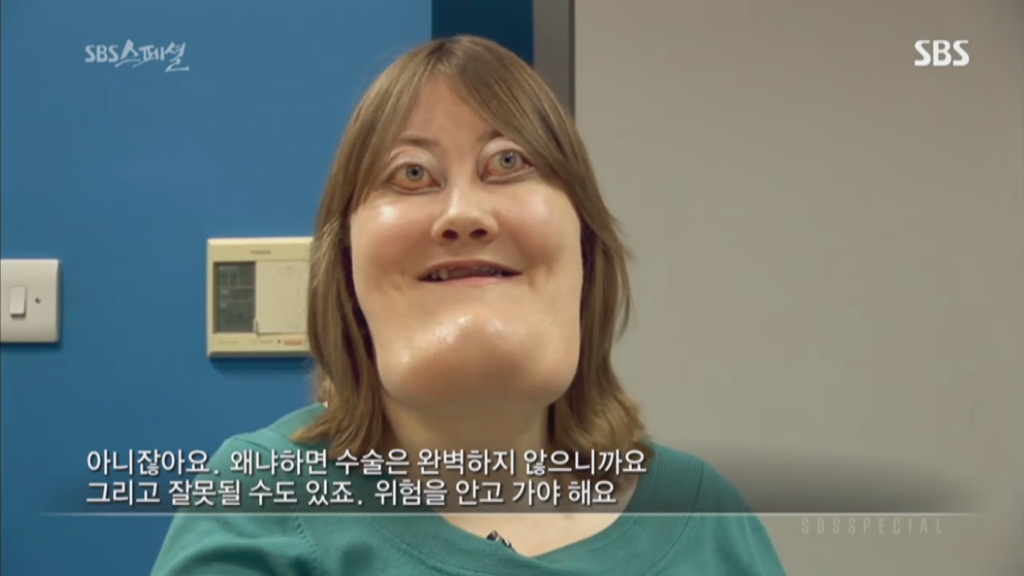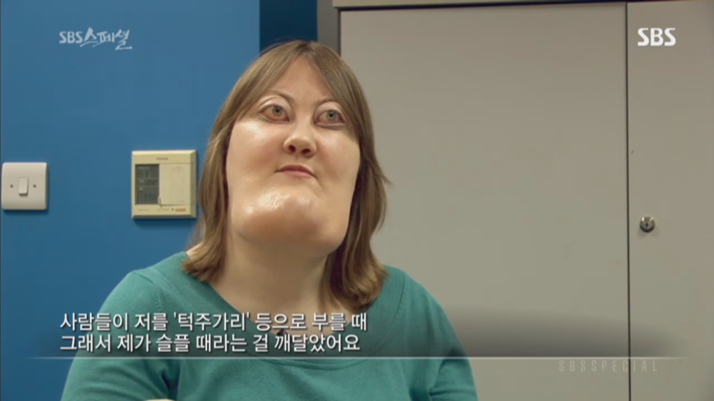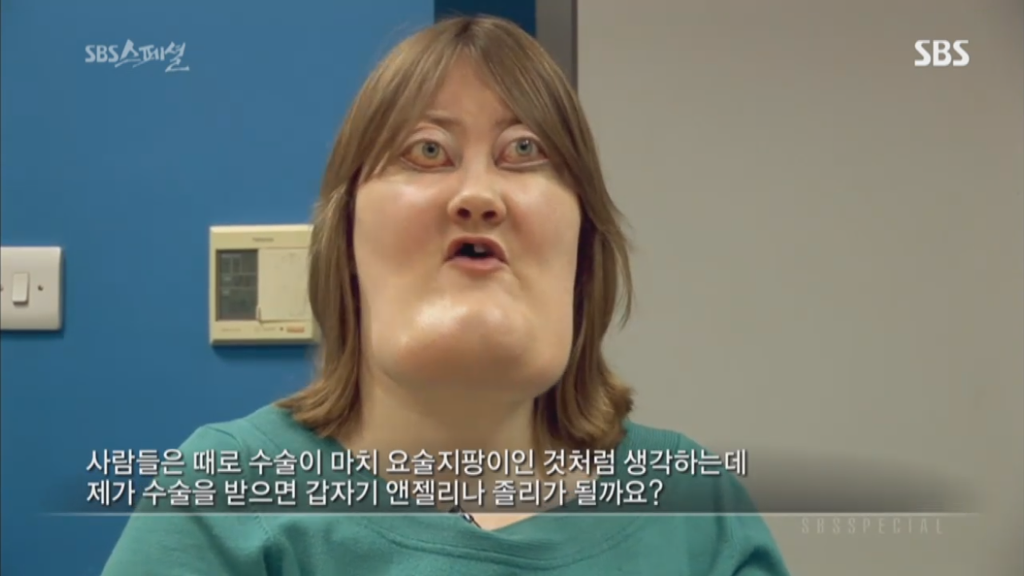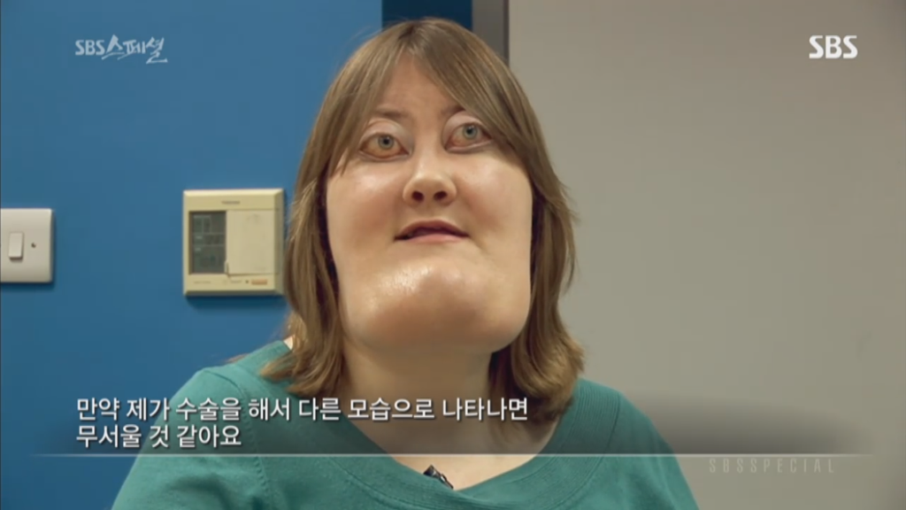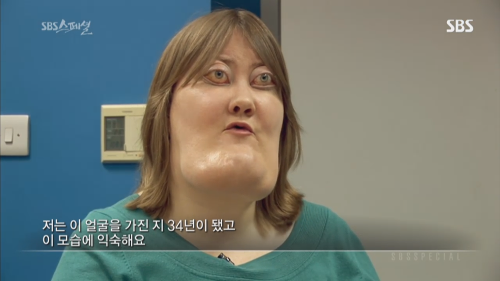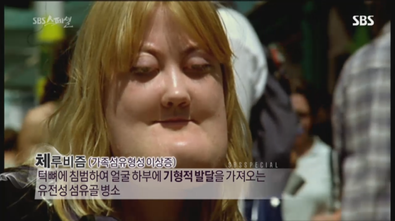 sbs스페셜 325회 양악수술편에 나온 비키 라이트는 체루비즘을 앓고 있는 사람임