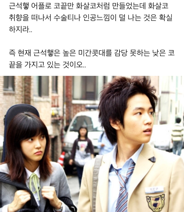 - 즉, 근석햏은 높은 미간 콧대에 비해 중간 콧대와 코끝이 낮아서 어색한 것입니다.