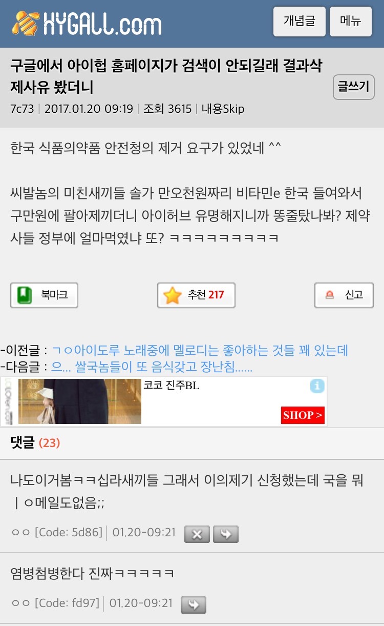 구글에서 아이허브가 검색이 안된다는 말 듣고 관련 글 찾아보니까