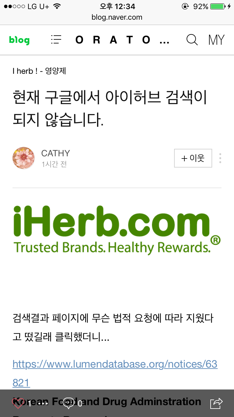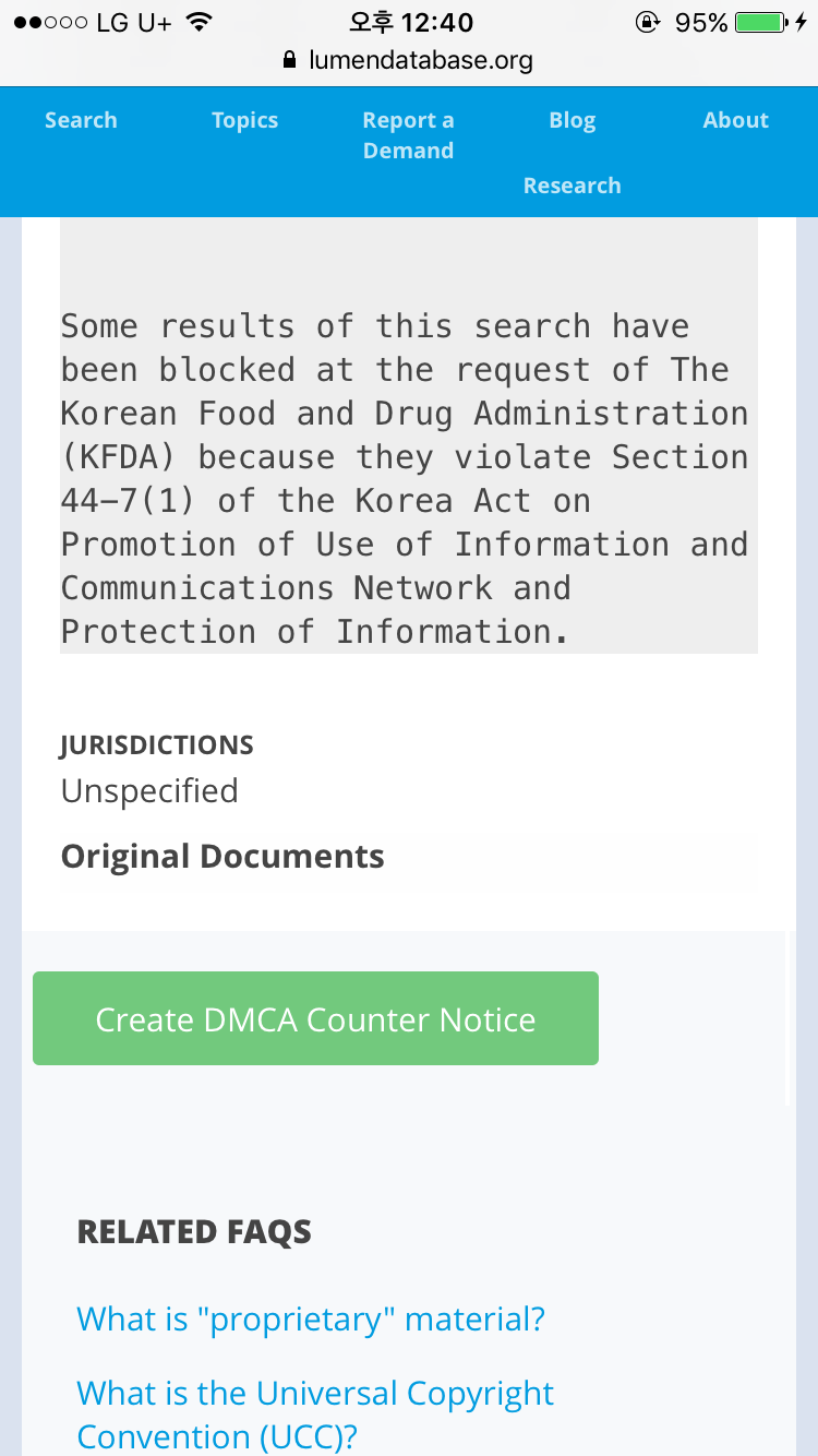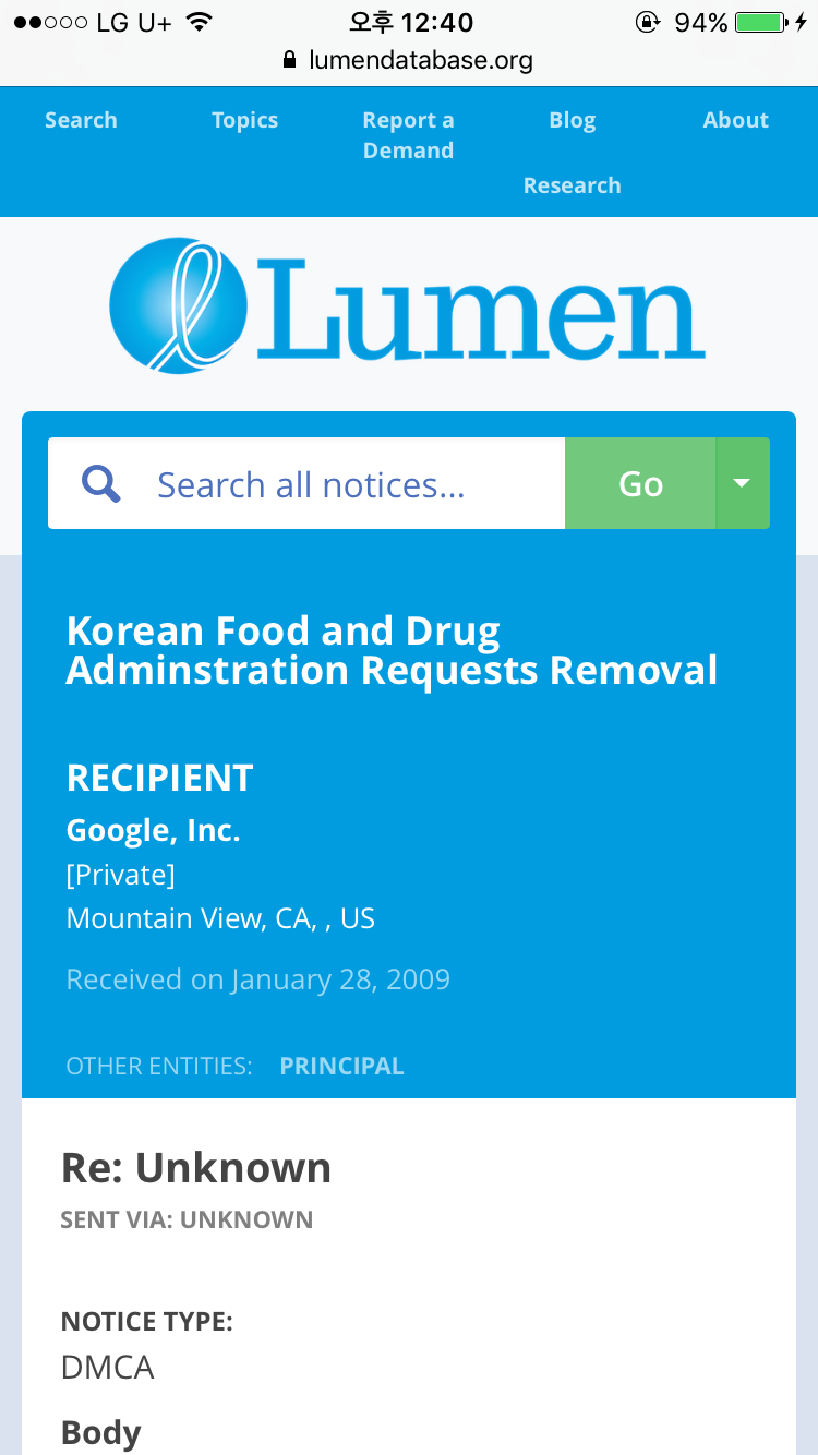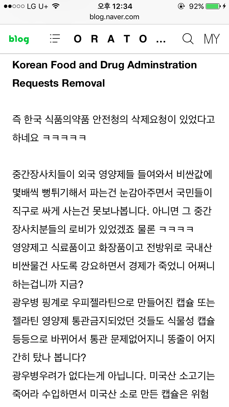 한국 식품의약품 안전처의 삭제 요청...^^