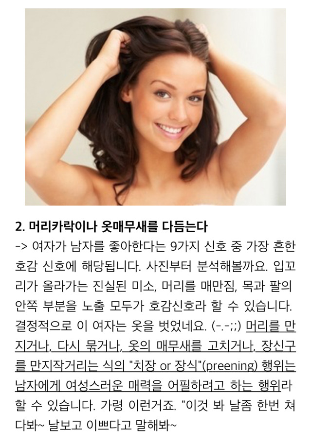 (여자가 남자에게 호감이 있을때 하는 행동)