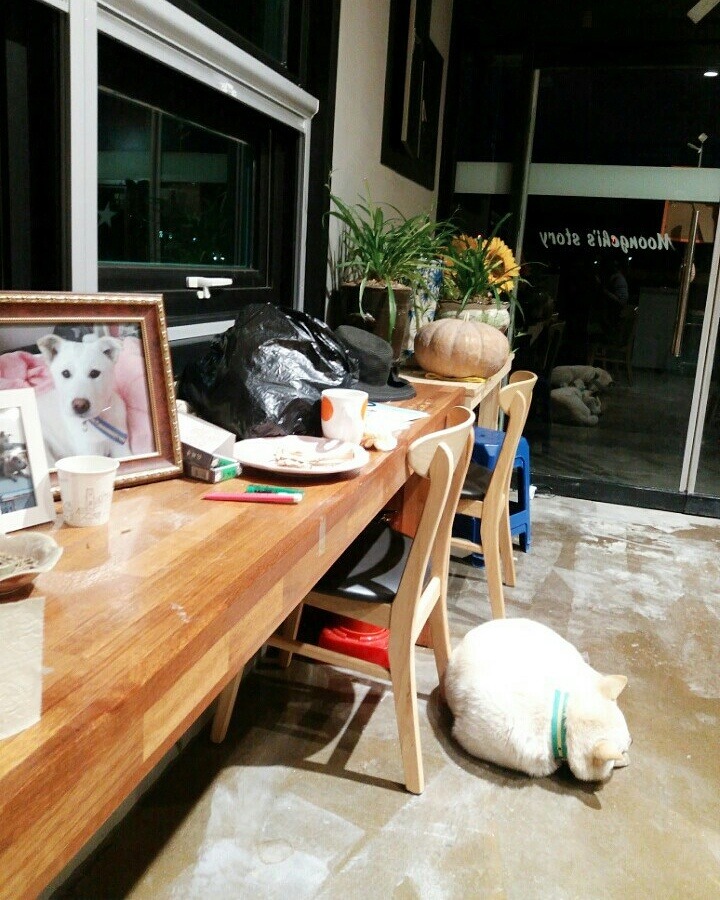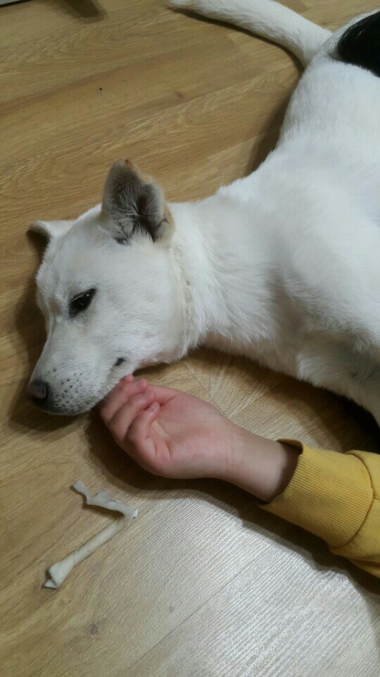 마당앞에서 슈퍼에간 엄마를 기다리다가 허무하게 개소주가 되어버렸습니다.
