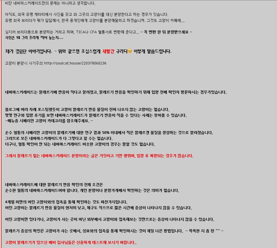 내남편은 냥이 알러지 있는줄 모르고 동생이 데려와서 3년 키우다가 천식생겨서 병원가서 알러지 검사받고 고양이 때문에 생긴거 알게되서 혼자 나가 살았었어 ㅠㅠ -