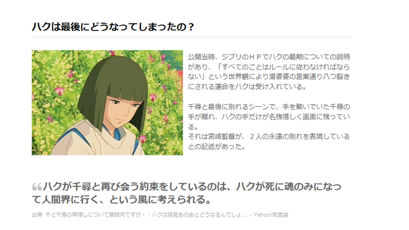 공개 당시 지브리의 HP에서 하쿠의 최후에 대한 설명에있어,