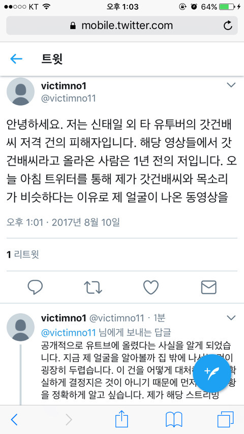답댓글 작성자조깐내 작성시간 17.08.11 이분은 카톡테러당하신분..