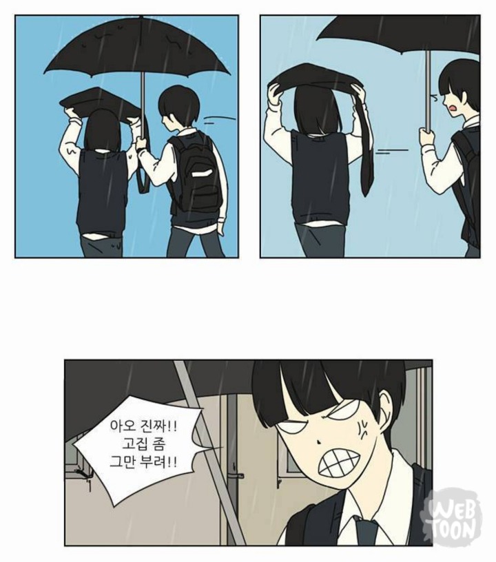 왕자림이 지랑 우산 쓰기 싫다고 그냥 비맞고 뛰어가는데 굳이 쫓아와서는 우산 안 받는다고 던지고 화냄