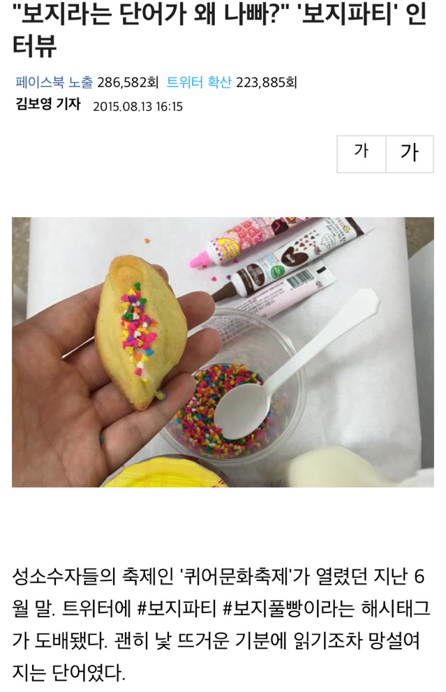 근데 왜 하필 한국의 퀴어퍼레이드에서 저 빵이냐고