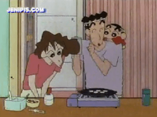 커서 문어빵 장사한다는 짱구말에 그래그래 해주는 짱구엄빠