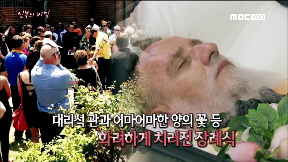 관은 대리석으로 그안은 어마어마한 양의 꽃으로 채워져
