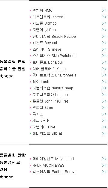 ++ 바디샵은 모회사가 동물실험 하는곳으로 합병되서 수익 일부가 모회사의 동물실험 하는 곳에 들어감