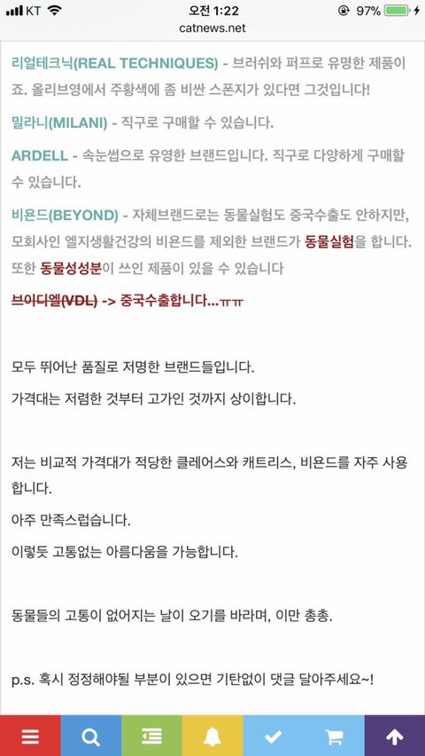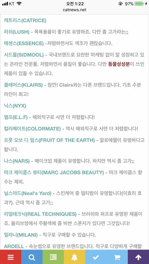 ★ 참고 할 만한 정보처 ( 동물실험 하는곳, 안 하는곳 - 색조- 파데, 립스틱부터 향수, 헤어제품, 렌즈 등 포함) 전반적으로 잘 설명 되어있음.