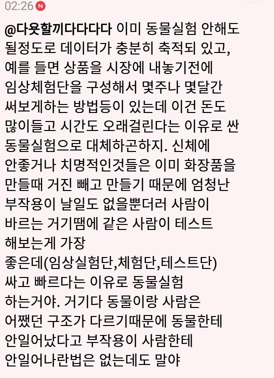 - 중국은 모든 화장품 동물실험이 필수라 우리나라에서 실험을 안거쳐도 중국에 수출되면 중국 정부에서 동물 실험을 하기때문.